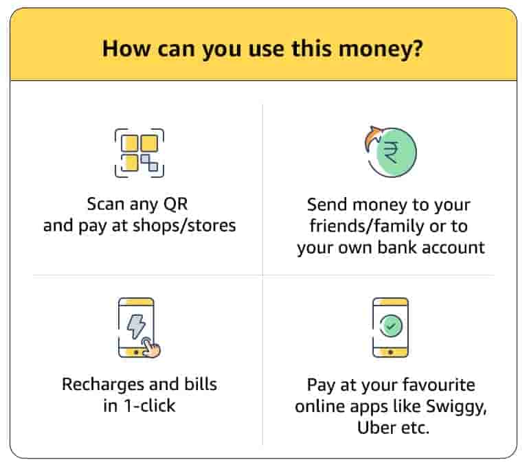 By depositing the Rs. 2,000 currency notes into your Amazon Pay balance, users gain the ability to scan and pay using QR codes at various shops, send money to individuals or phone numbers, and make payments on online apps.