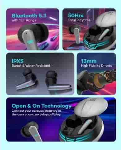 These earbuds are inbuilt with Bluetooth 5.3 which will establish a strong and stable connection to your devices. The maximum range of these earbuds is 15 meters. These earbuds have a dedicated game mode which offers 40ms of low latency. With the game mode enabled, you will be able to play games with minimal lag.
