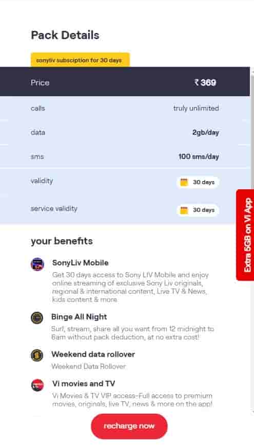 Vodafone Idea offers an exciting pack of Rs 369 which comes with a 30 days subscription validity to SonyLiv Mobile.