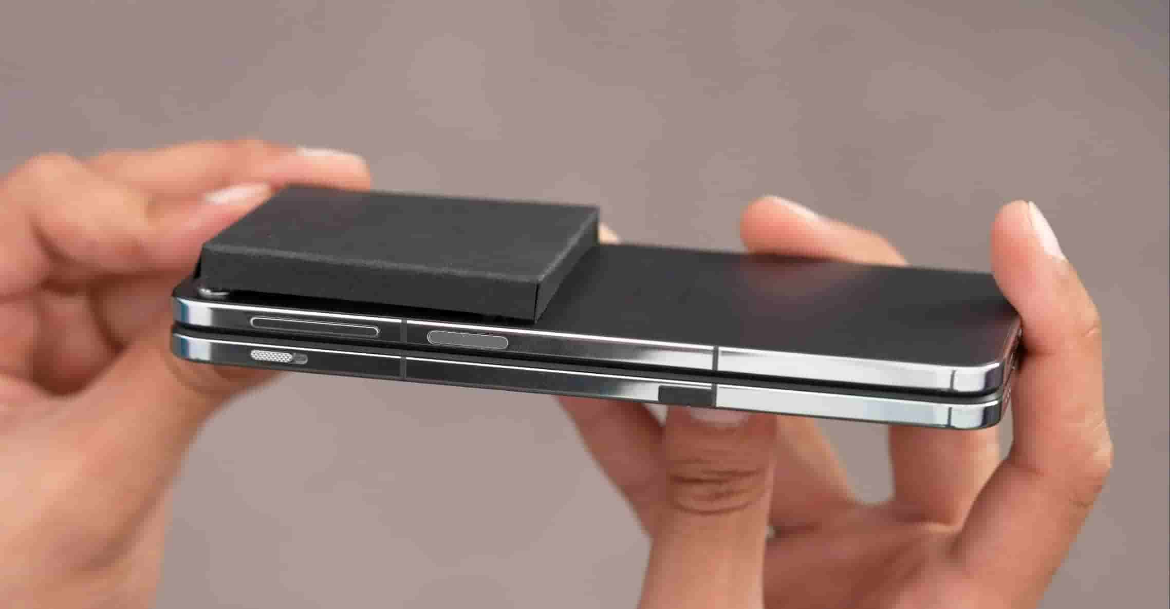 While comparing the foldable to OPPO’s Find N2, the OnePlus Open is also said to have 31 parts fewer on its hinge, which is the reason for the light-weight design, and is 37% smaller than the former. Another notable thing about the hinge is its gapless fold and in order to demonstrate its strength, a paper was inserted in between the fold and was held in the air, as you can see in the image. The device is so tightly folded that it doesn’t slip down from the enclosed paper.